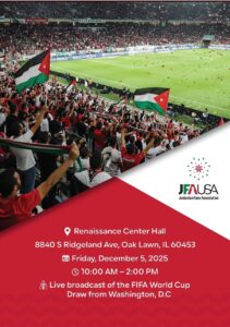 The Jordanian Nashama Fans Association in America is honored to invite you to attend the 2026 World Cup Draw Viewing Event and the official launch of the Association’s activities.